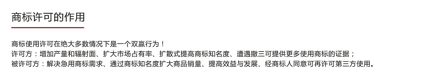 商標注冊人可以通過簽訂商標使用許可合同,許可他人使用其注冊商標。許可他人使用其注冊商標的,許可人應當在許可合同有效期內(nèi)向商標局備案并報送備案材料。備案材料應當說明注冊商標許可人、被許可人、許可期限、許可使用的商品或者服務范圍等事項。