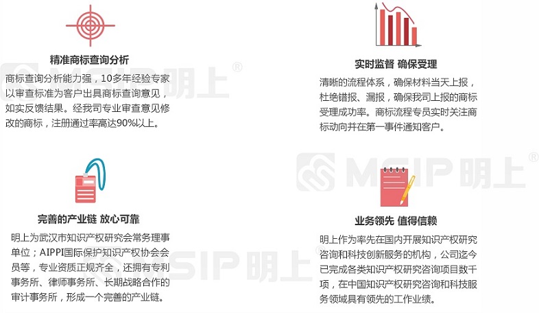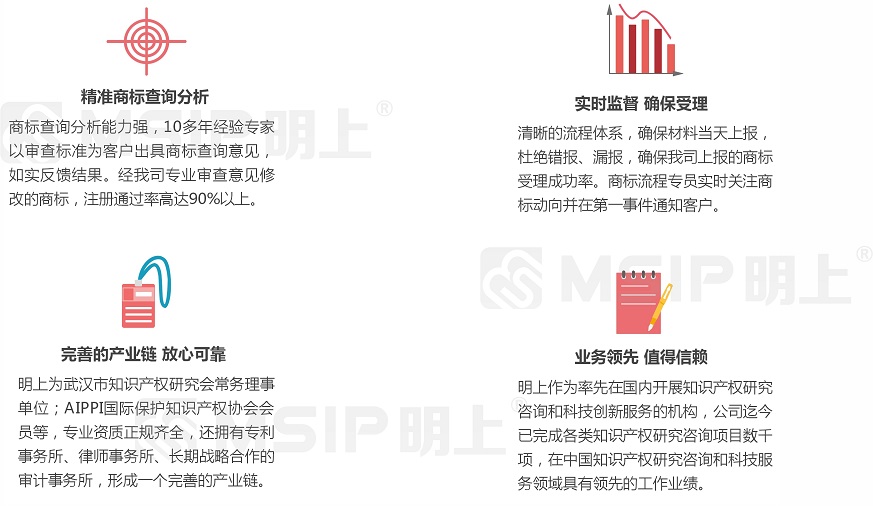 1、專業(yè)知識產(chǎn)權背景  明上利用自己專業(yè)化的知識產(chǎn)權背景,為企業(yè)知識產(chǎn)權領域業(yè)務提供專業(yè)解決、代理申報服務并完善申報工作中關于企業(yè)自主知識產(chǎn)權的專業(yè)問題。