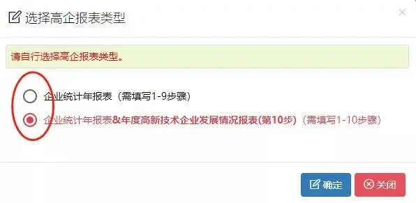 注意:以上兩個(gè)選項(xiàng)任選其一進(jìn)行填報(bào),區(qū)別在于第二個(gè)選項(xiàng)中第10步的數(shù)據(jù)直接同步到高新技術(shù)企業(yè)發(fā)展情況報(bào)表,建議財(cái)務(wù)報(bào)表數(shù)據(jù)已確定的企業(yè)直接進(jìn)入第二個(gè)選項(xiàng)填報(bào)。