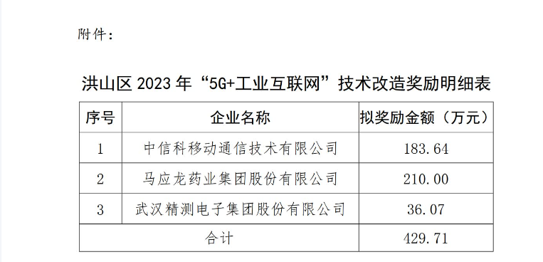 【公示】關(guān)于洪山區(qū)2023年“5G+工業(yè)互聯(lián)網(wǎng)”試點(diǎn)示范項(xiàng)目獎勵的公示